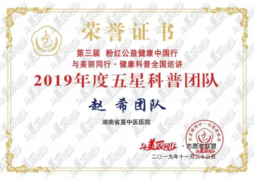 我院乳腺科团队在2019年度收获满满,获得了2019年度“与美丽同行•健康科普全国巡讲“五星科普团队奖”;同时赵希主任获得2019年度“与美丽同行•健康科普全国巡讲”十佳科普医生、2019年度“与美丽同行•乳腺健康万人筛查公益行”十佳医生、第三届“粉红公益健康中国行”2019年度优秀志愿者等。