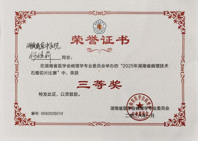 我院病理科技师荣获全省病理石蜡切片大赛三等奖